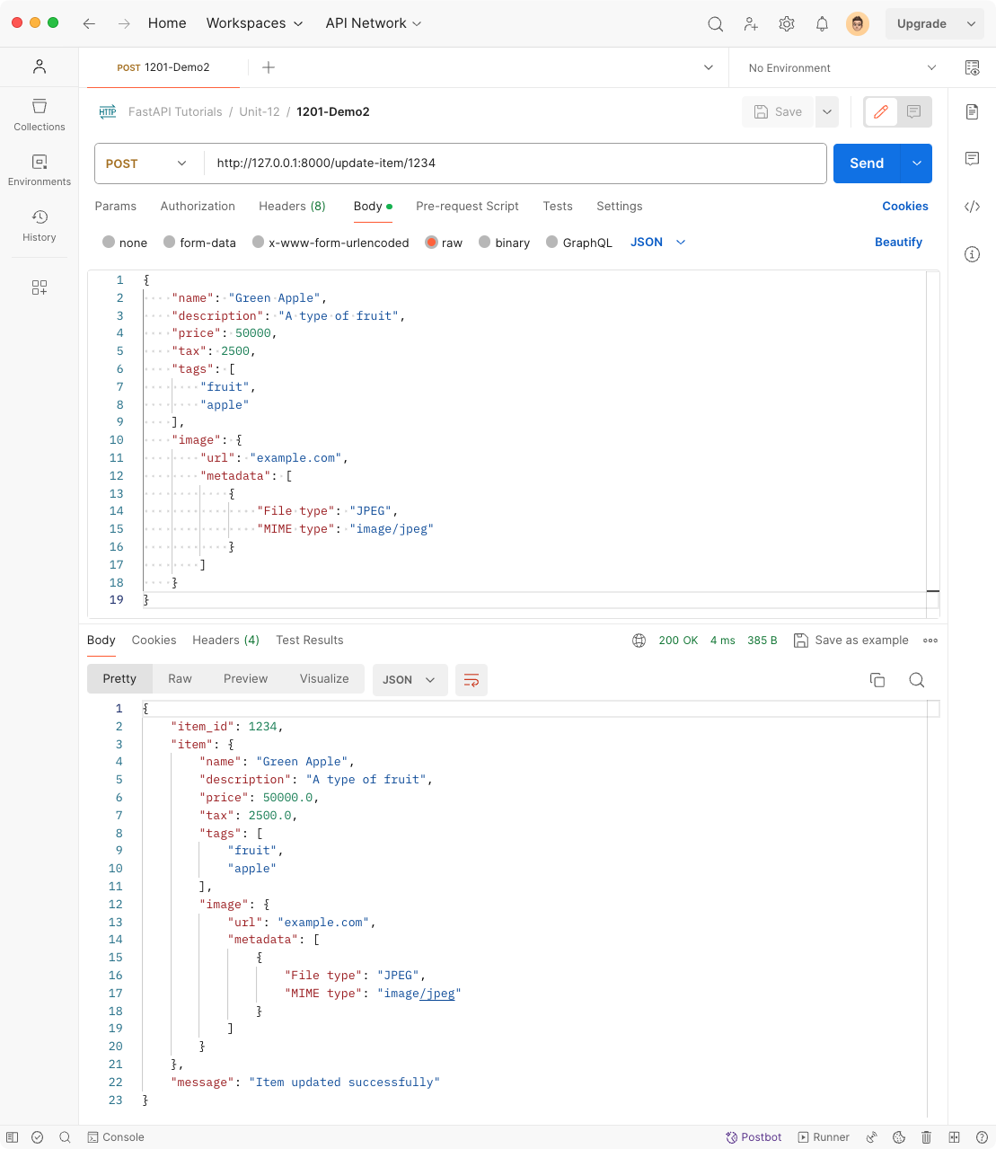 To evaluate the program, you can compose a request in Postman as shown in Fig. 1. The request body can be as follows: